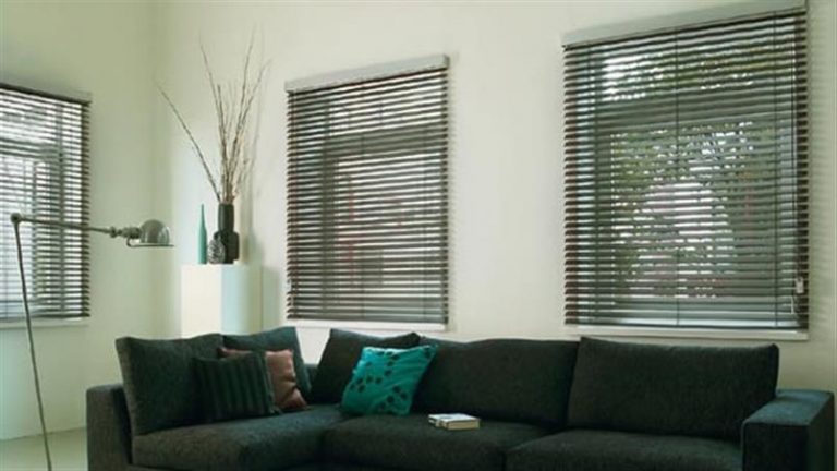 Venetian blinds are available in aluminium, timber, and PVC, with a choice of slat widths. Timber and PVC models often include a fascia to cover the head box for a neater finish.